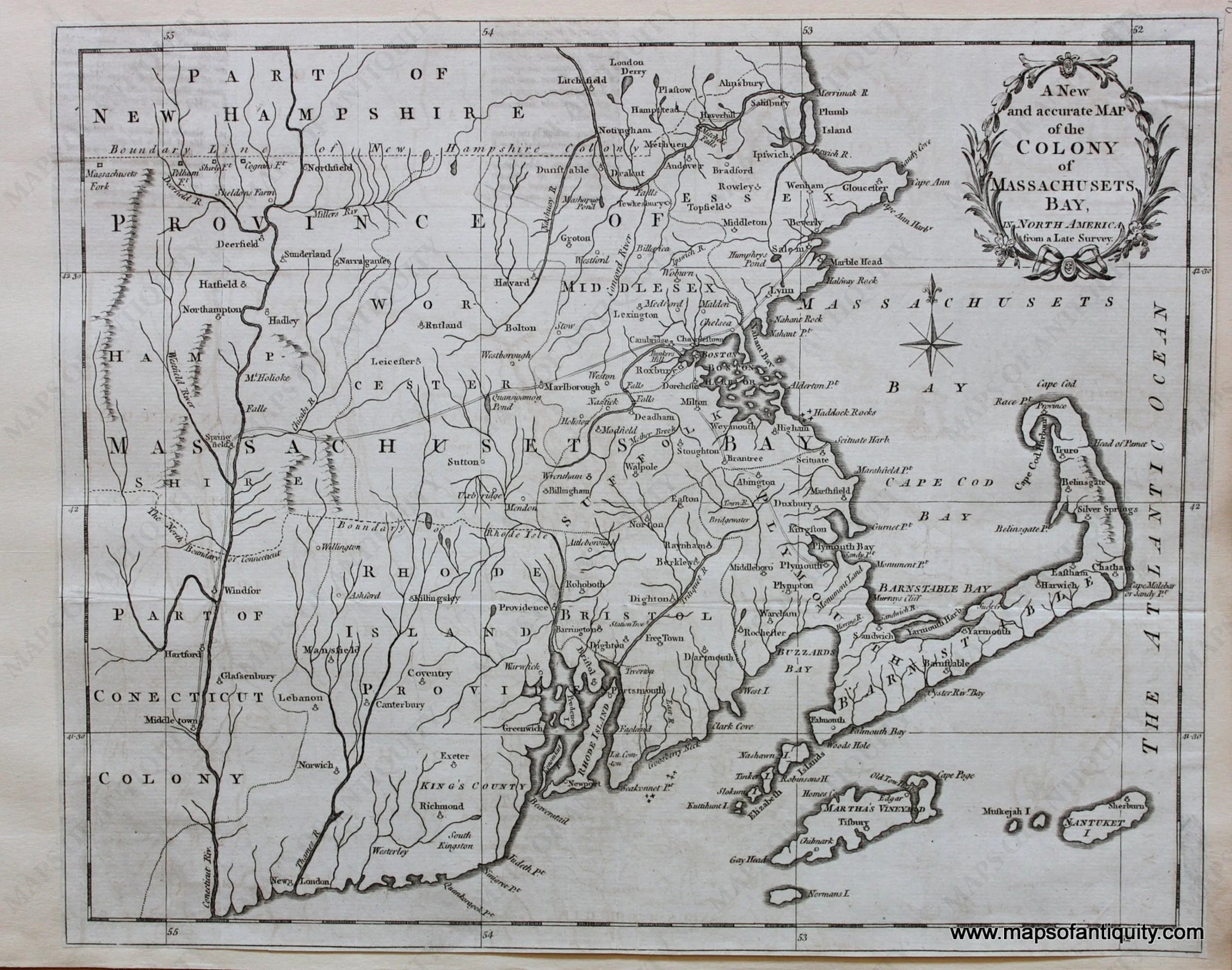 Black and White Antique Map of Massachusetts, with original specific text. Cut to outer neatline and mounted to paper; map is in Very good overall antique condition. Approx. 10.5 x 13.75 inches.*****SOLD*****