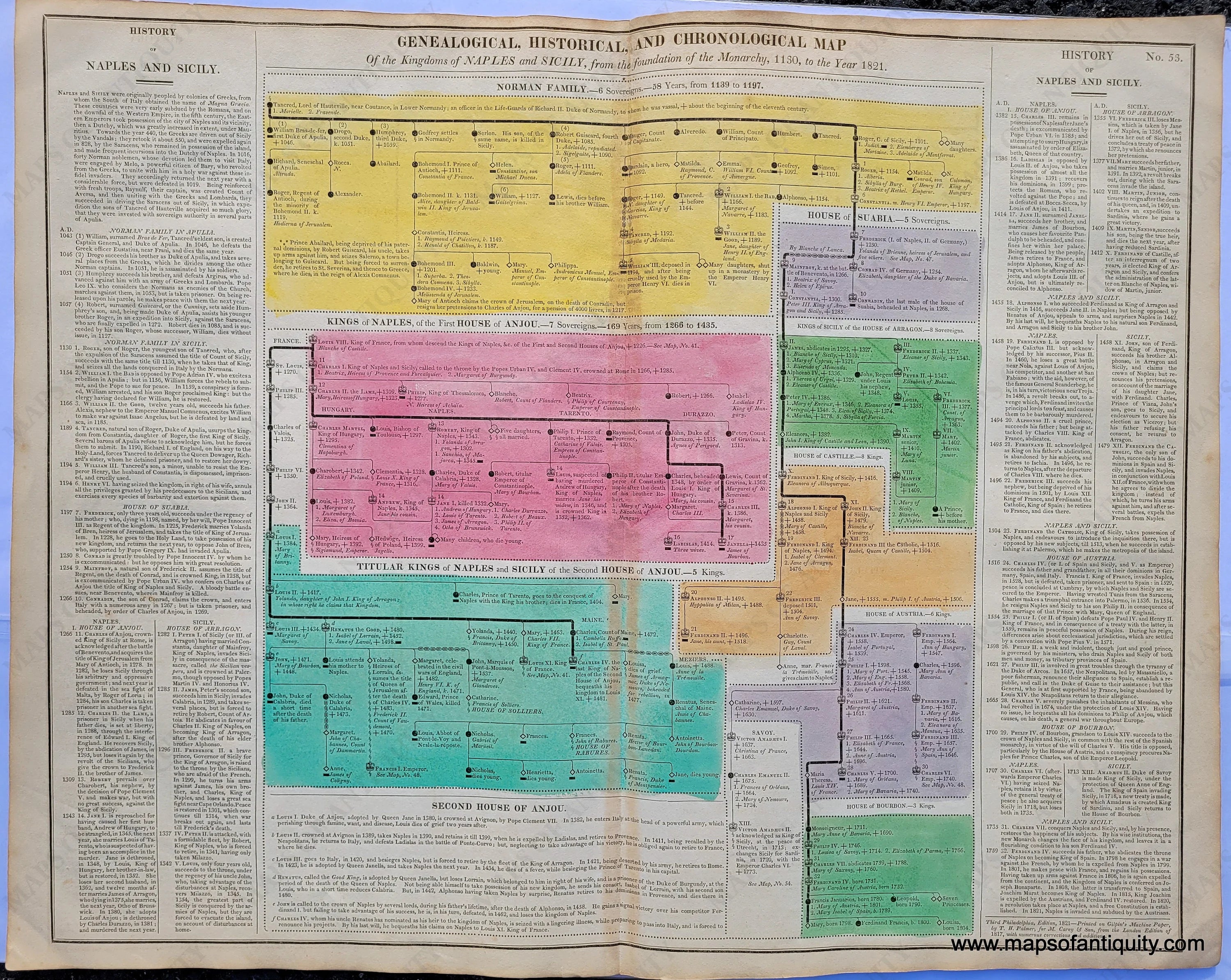 Genealogical, Historical, and Chronological Map of the Kingdoms of Naples and Sicily, from the foundation of the Monarchy, 1130, to the Year 1821. No. 53.