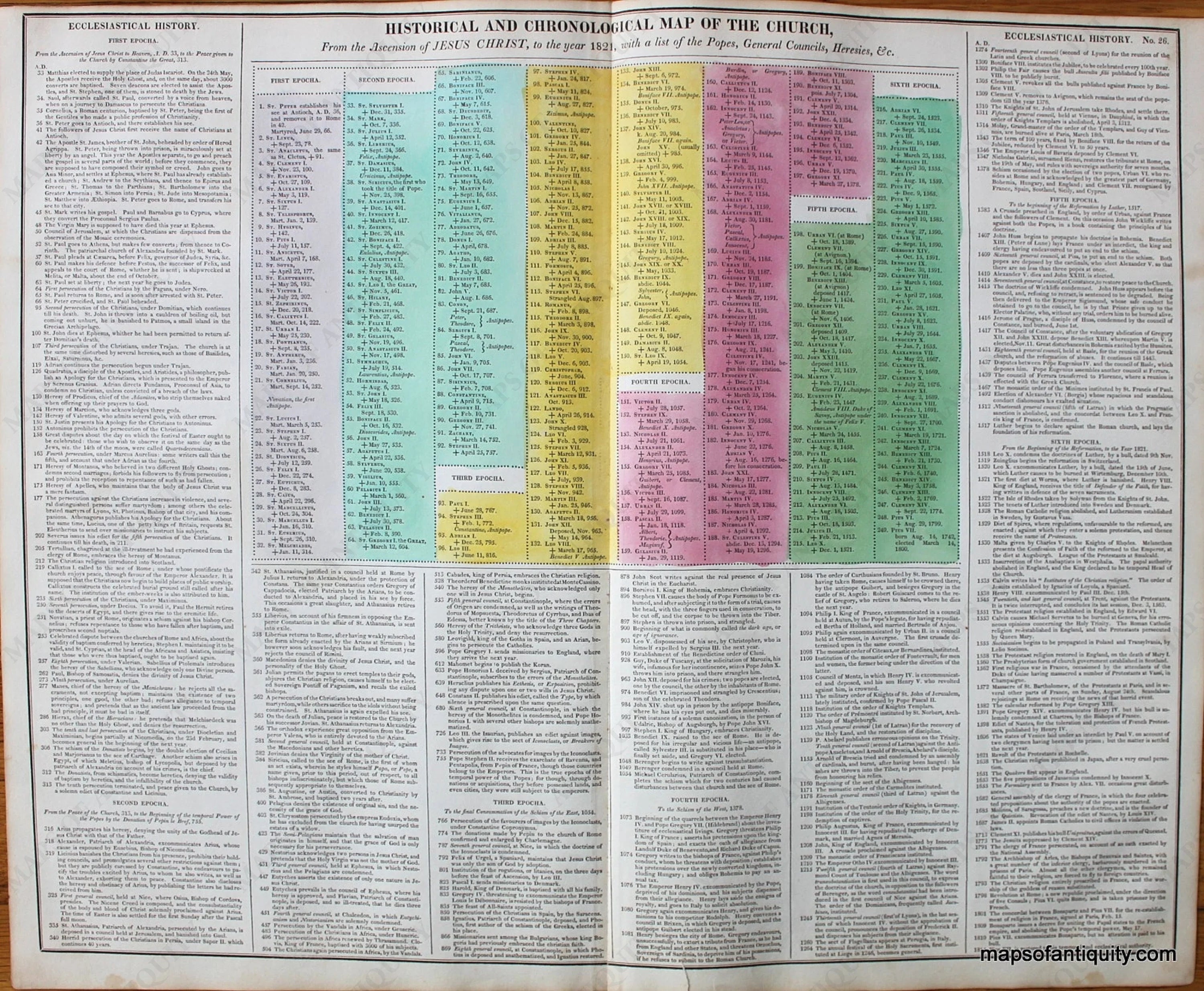 1821 – Historical and Chronological Map of the Church, From the Ascension of Jesus Christ, to the year 1821, with a list of the Popes, General Councils, Heresies, etc. No. 26 – Antique Timeline Chart Sale Cheap Pice