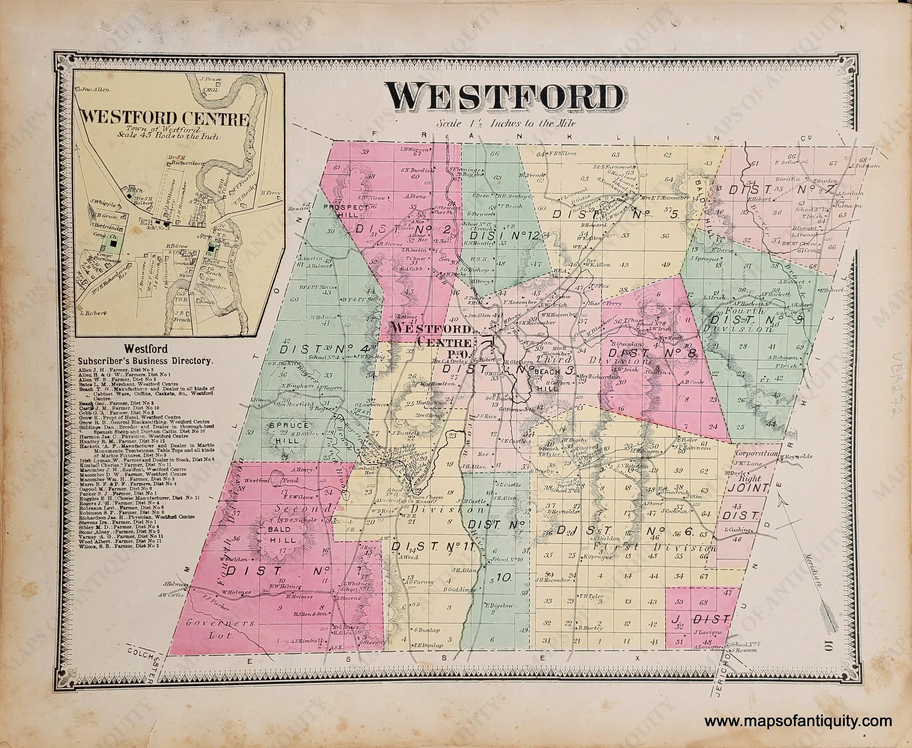 SKU: 1869 - Westford (VT) - Antique Map Sale Choice-16413 Categories: ,
