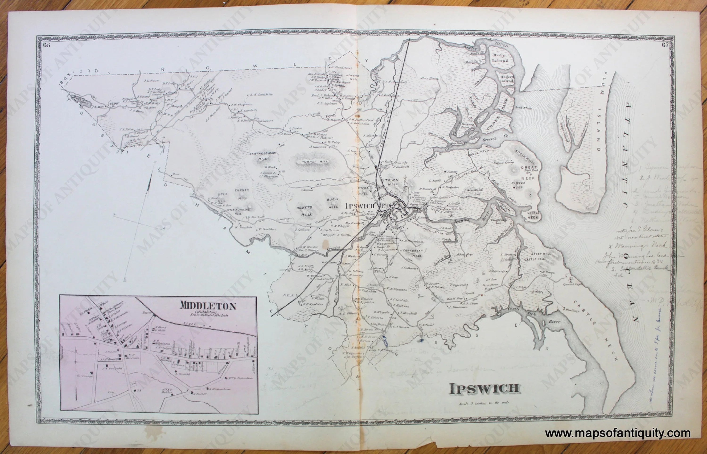 SKU: 1872 - Ipswich & Middleton, Massachusetts - Antique Map Perfect Cheap Online-15813 Category: