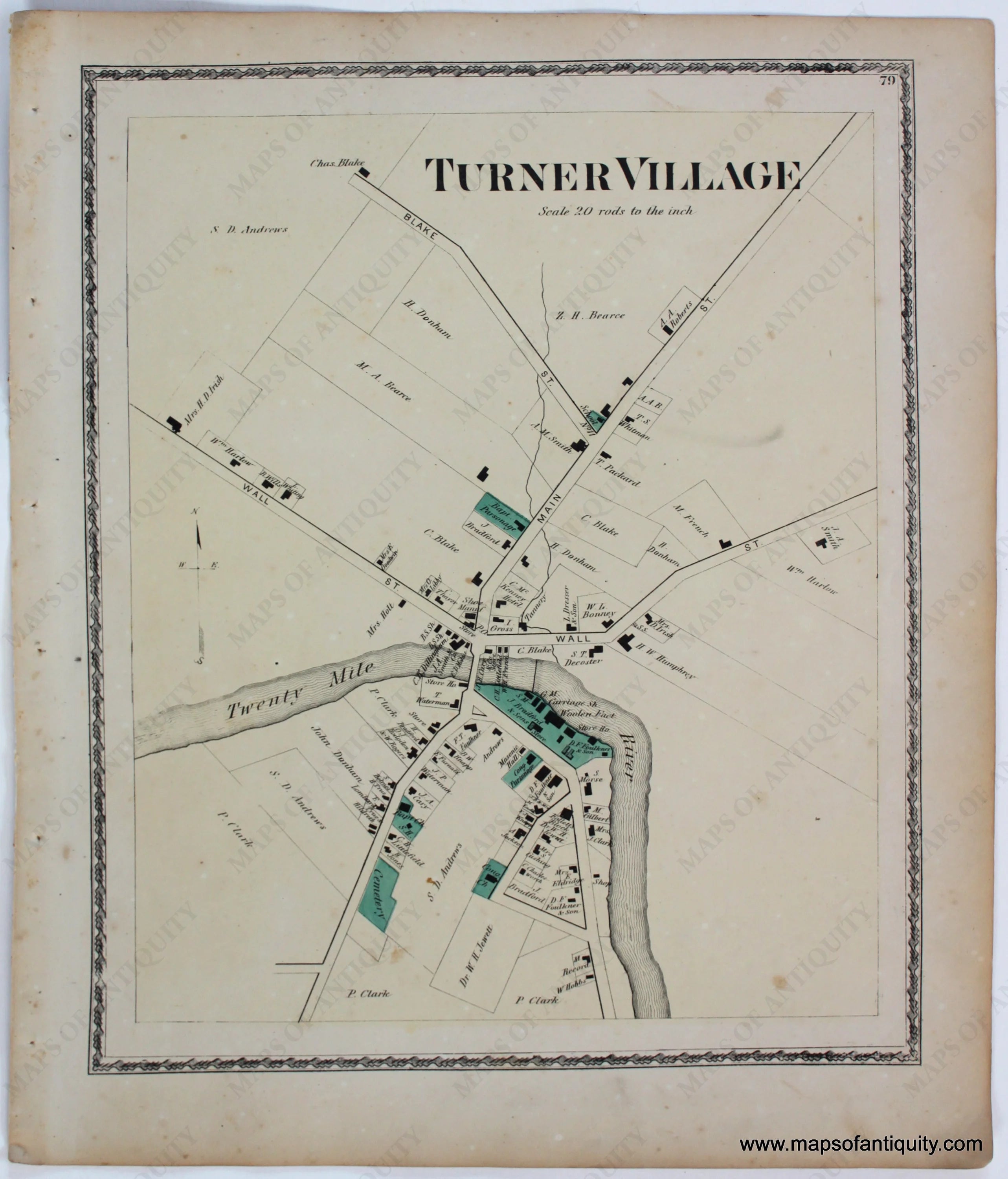 1873 – Turner Village (Maine) – Antique Map New For Sale