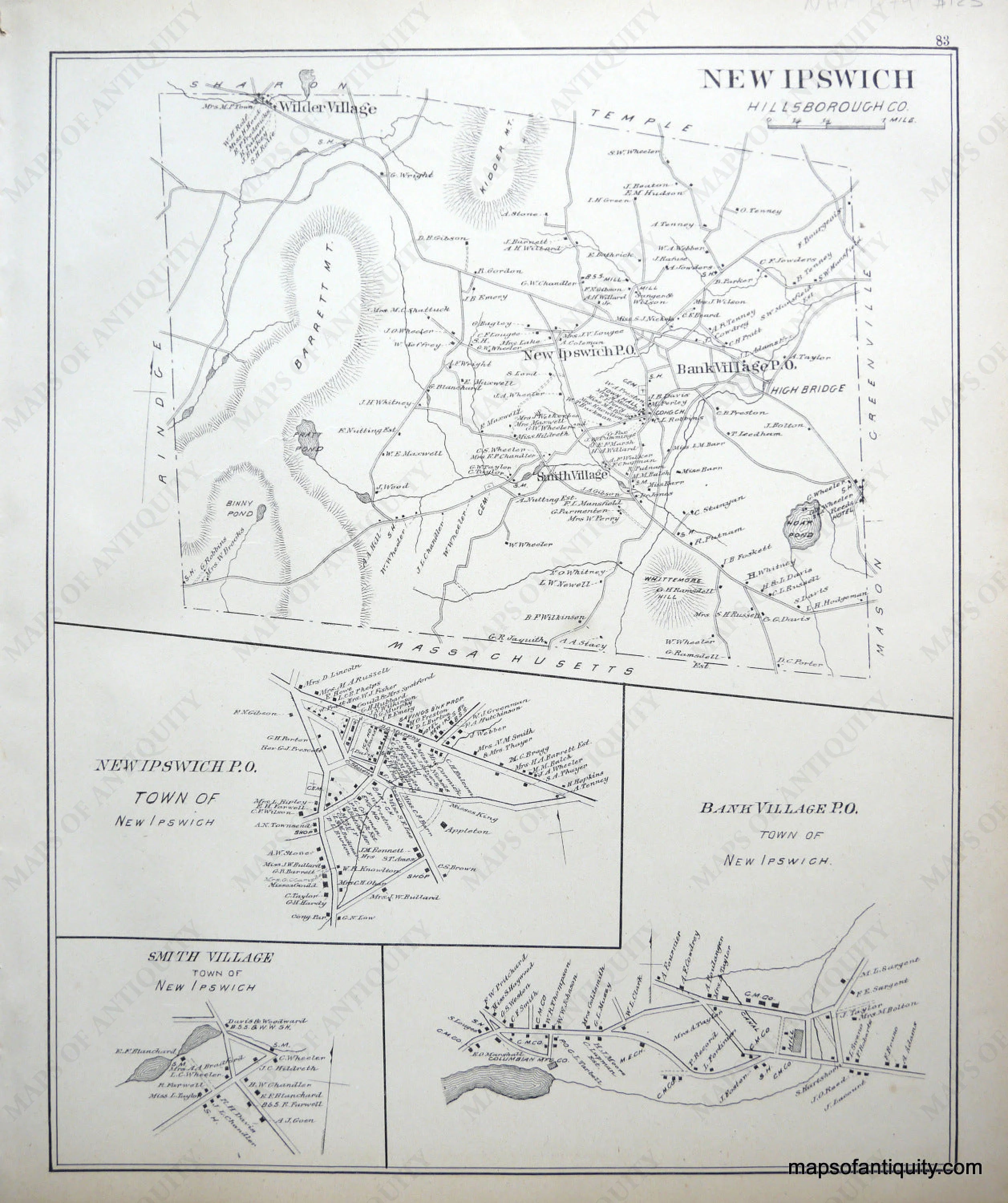 From the Town and City Atlas of the State of New Hampshire, by D.H. Hurd, 1892. Good condition, approx. 13 x 17.25 inches.