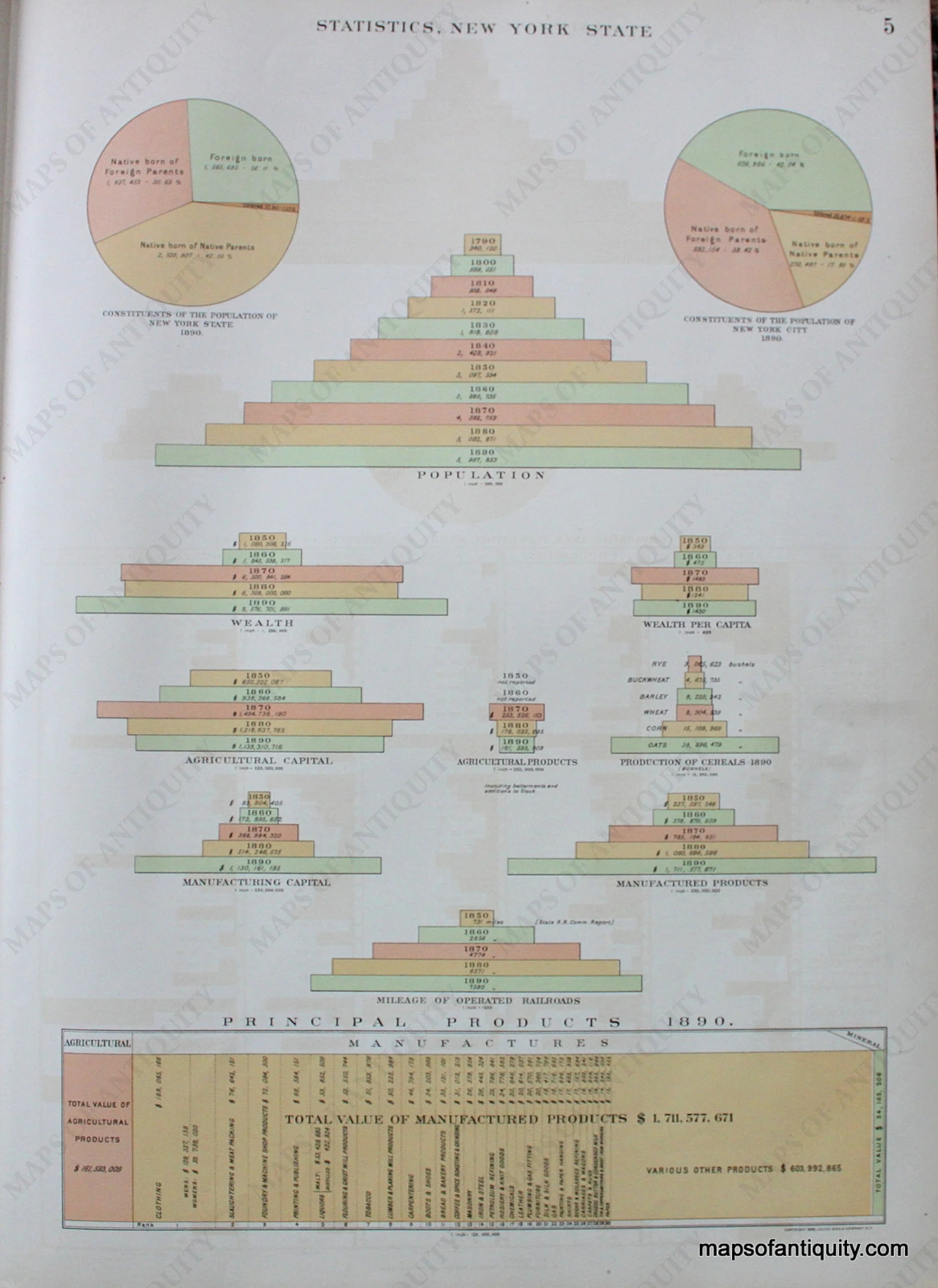 From the Atlas of the State of New York, by Joseph Bien, 1895. Printed color. Very good condition, slight offsetting, approx. 23.75 x 16 inches.
