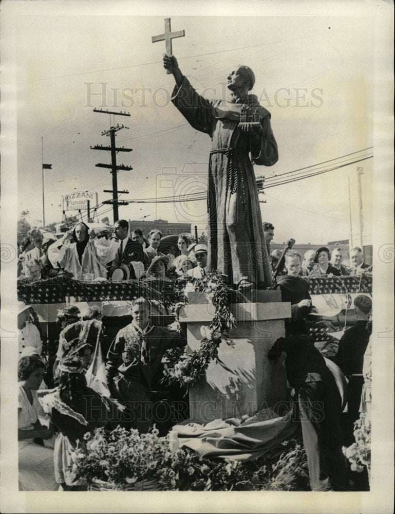 Tribute to the memory of fray Junipero Serra founder of California’s missions, was paid in Los Angeles by the erection of a statue of the noted priest. The stat