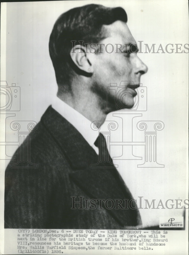 This is a striking photographic study of the Duke of York who will be next in line for the British Throne if his brother King Edward VIII A duke (male) or duchess (female) is a member of the nobility, historically of highest rank below the monarch, and