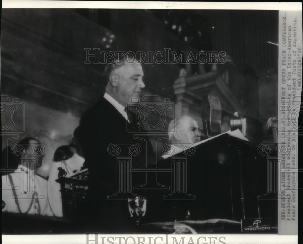 Roosevelt opens peace conference — President Roosevelt and leading the opening of the Inter-American Peace Conference here. On his left is President…