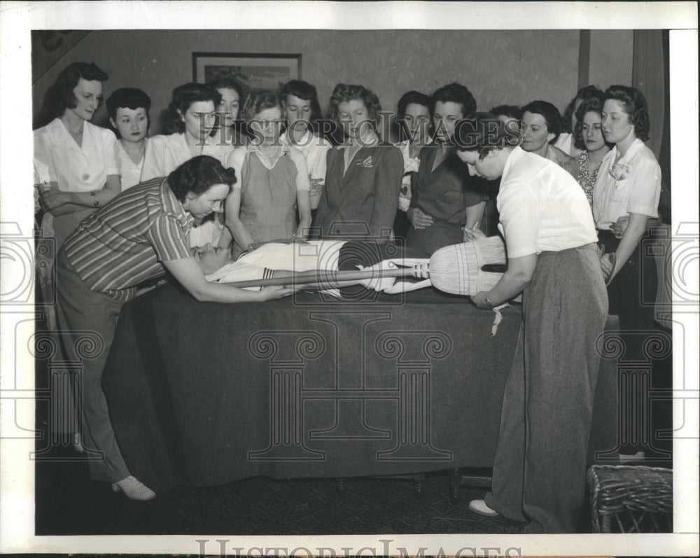Marion Voss (R) demonstrates first aid to telephone company employees.First aid is the provision of initial care for an illness or injury. It is usu