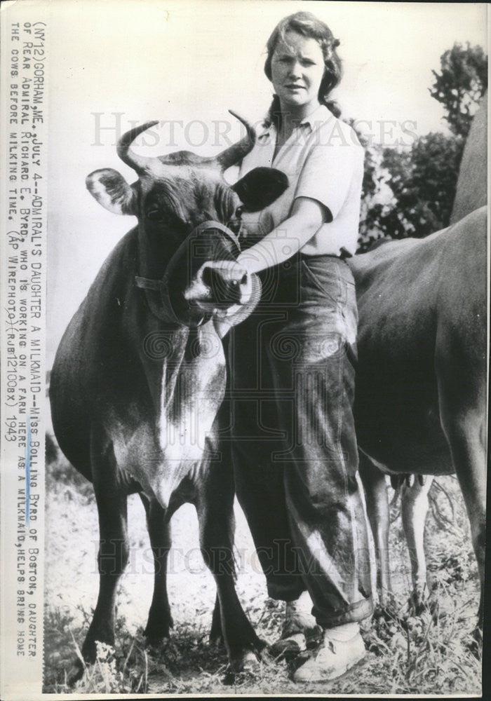 Miss Bolling Byrd, daughter of Admiral Richard Byrd, works on a farm as a milkmaid