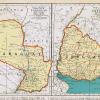 Antique printed color map of the United States published c. 1950 by the Department of State and copyright General Drafting Co, Inc. Printed in Arabic. This map of the US features illustrations of regional resources, products, and natural features. An inset map in the upper right shows the location of the USA in relation to the rest of the world, while inset maps at the bottom show Principal Trunk-Line Railroads, Principal Air Routes and Terrain, and Principal Trunk Line Highways. The box of text gives Facts About the United States. This map was published many times in various iterations. This particular map was likely one of the earlier publications because it has nothing printed on the verso and was not sponsored by any companies. Good to very good condition, with folds as issued, some edge damage, and mild toning. Some wear along the folds. Approx. 23 x 31 inches to the neatlines. **SOLD**