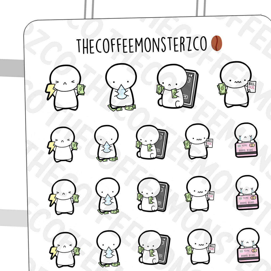 Fun stickers for a not-so-fun task 🙁 Emotis paying electricity bills, hydro bills, phone bills, and credit card bills.