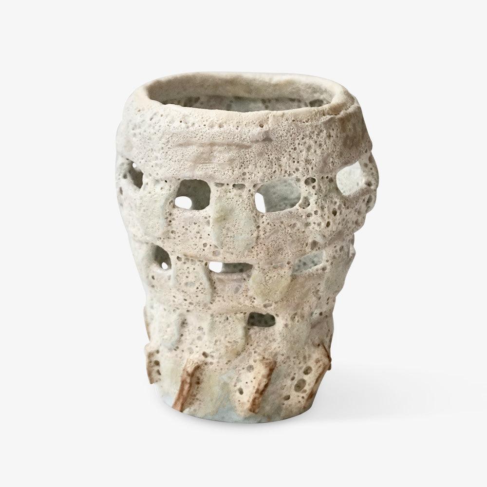 Across “BOUNDARY,” the new series from artist Chie Fujii, viewers are encouraged to see beyond the structural and decorative elements and consider their meaning. Through a thoughtful and thorough process, Fujii creates surfaces that mimic bone or lace, or ancient vessels hearkening from the Japanese Jomon era. The series conveys her interest in exploring both the inner and outer space of her creations, and the distinctions between things.