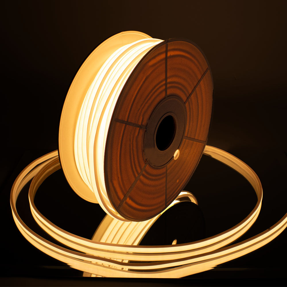 Wil je je interieur verfraaien met aangenaam, warm wit of natuurlijk wit licht? Zoek niet verder! Onze COB LED Strip is de perfecte oplossing om je ruimte te verlichten en een gezellige sfeer te creëren. Bij deze mooie dimbare COB LED slang van 220 – 240V wordt het licht gelijkmatig verdeeld en egaal verspreid. Dit komt door de COB technologie. Dit zorgt voor een erg mooi effect in uw woning en is de beste keus als u decoratief licht wilt. De LED strip heeft een lengte van 50 meter. De LED snoer is in te korten bij de kniplijn. Deze LED strip is stofdicht en kan tegen waterstralen (IP65). Dus het is geen waterdichte LED strip. De LED strip heeft een verbruik van 10 watt per meter.