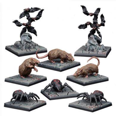 The deep places of Mantica are far from empty. Creatures make their homes there, preying on the weak and growing strong on the remnants of the God War. It is a careless adventurer who does not treat them with caution. This set contains 8 resin miniatures, including: 3 Spiders 3 Rats 2 Bat Swarms 25mm Plastic Dungeon Themed Bases Miniatures supplied unassembled and unpainted