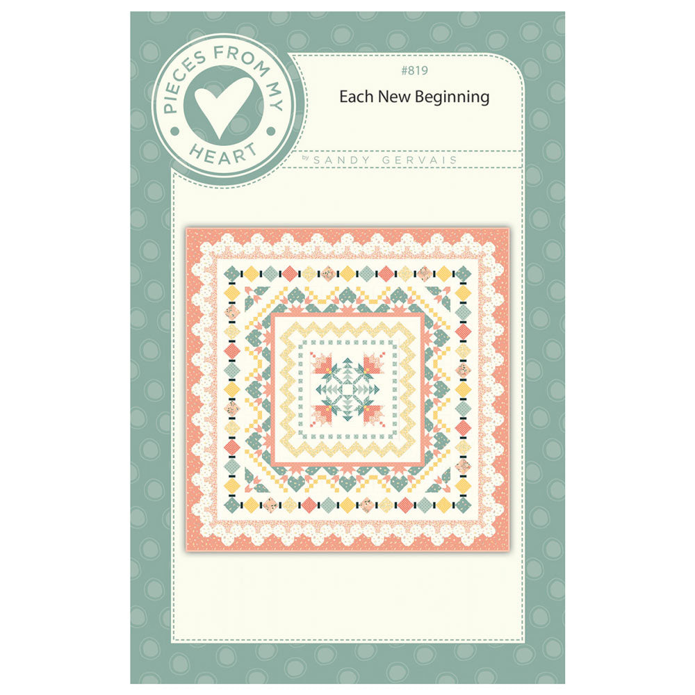 This sampler quilt is made up of various borders. It is fun to make because each border is like a whole new beginning. Fabrics from the line New Beginnings by Sandy Gervais for Riley Blake Designs are use in this pattern. Finished size: 75″ x 75″.