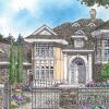 The kitchen of the Fontana plan has a large walk in pantry. There is a center island that provides plenty of extra counter space. To the left of the Fontana plan, a cabana-style powder bath serves the pool area and maintains privacy for the master wing. The owners’ retreat sports a sitting area, a walk-in closet designed for two, and a luxurious master bath with his-and-hers vanities. One corner of the bath contains an oval soaking tub and another corner has a large walk in shower.