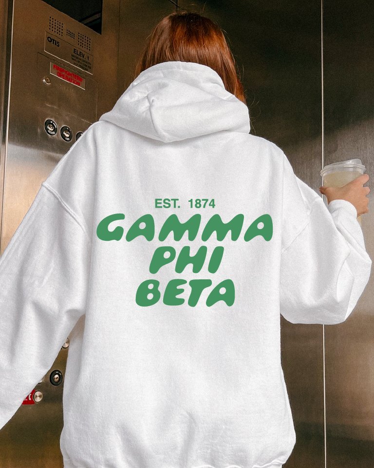 Gamma Phi Beta Bubble Font Sorority Hoodie | Gamma Phi Trendy Sweatshirt | Big Little Gift | Recruitment Gift Cheap Sale Inexpensive