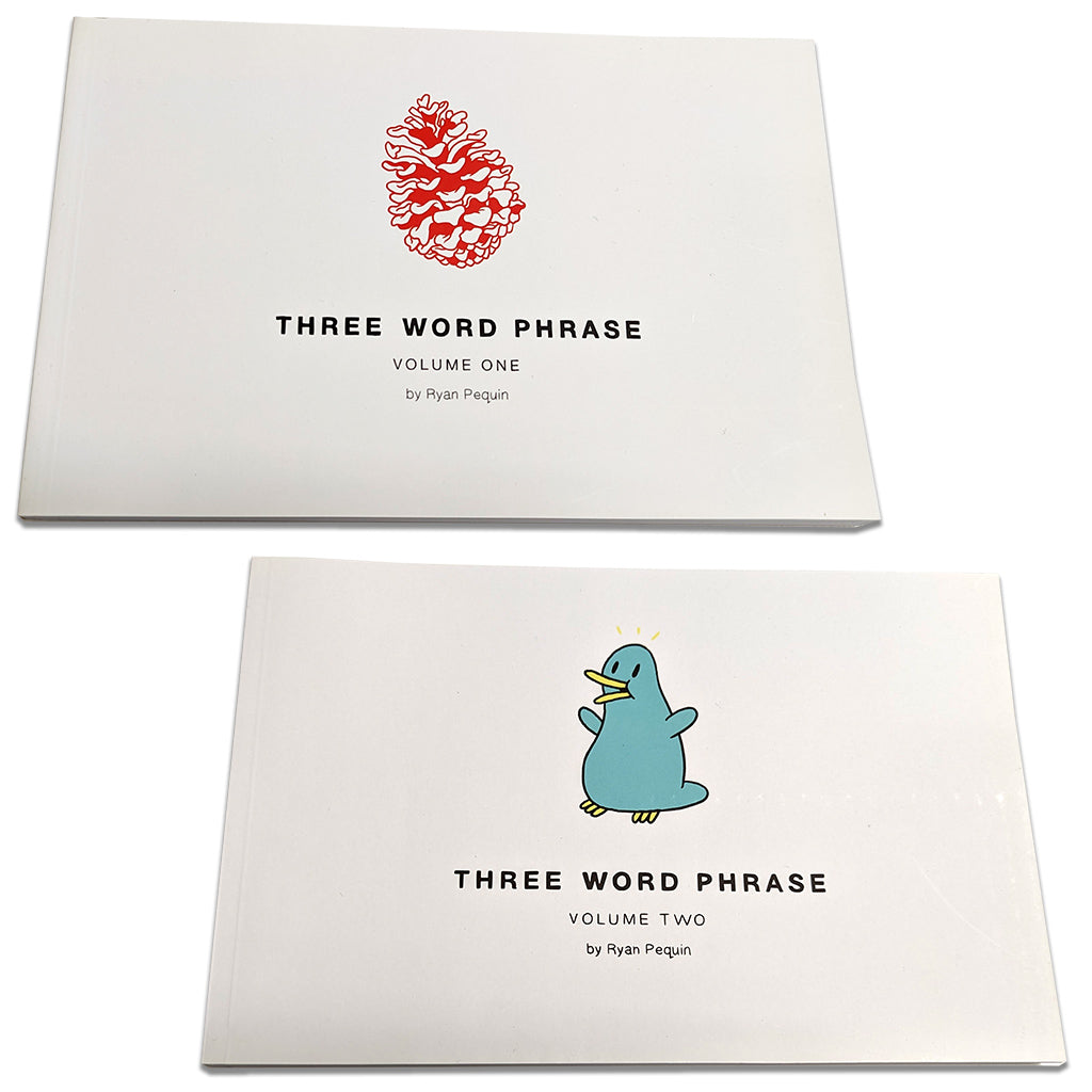 Three Word Phrase is a book full of comics that Ryan Pequin drew. Some of them he drew with a pencil but most of them he drew on the computer. If you enjoy jokes about birds that are the president, bears who have extremely low self esteem, or how nobody likes you, then you should probably just go ahead and buy this thing. Both books are176 pages long and at least one of the comics is about a dog.