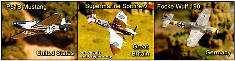 PER PACK: 3 Fighter Planes (1 each of the popular WWII fighters pictured above.)